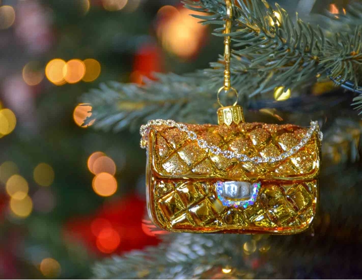 Offrez cette suspension de Noël sac de luxe doré à une fashion victime qui sera émerveillée par les détails de ce joli sac à main en verre.