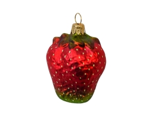 Boule de Noël originale en verre soufflé fraise rouge entière avec détails peint à la main. Hauteur 8cm.