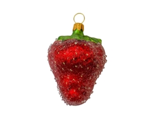 Boule de Noël originale demi fraise en verre soufflé et peinte à la main. Hauteur 8cm.
