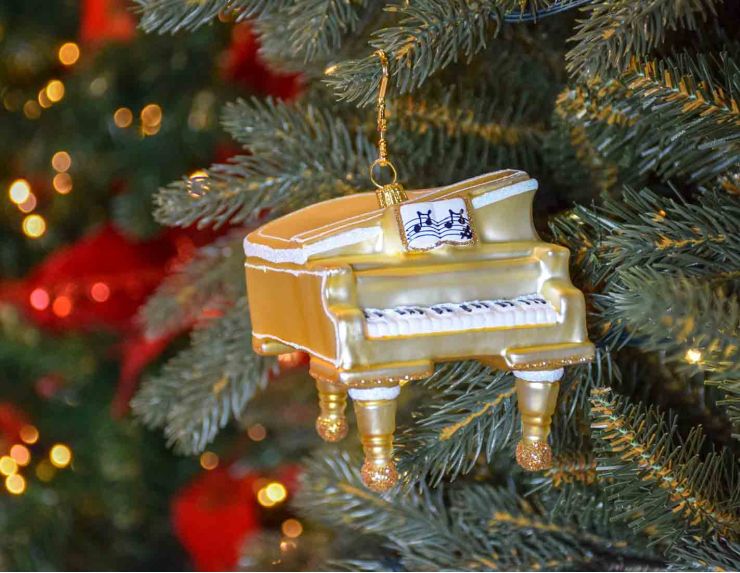 Suspension de Noël originale piano doré mat en verre soufflé et décoré à la main.