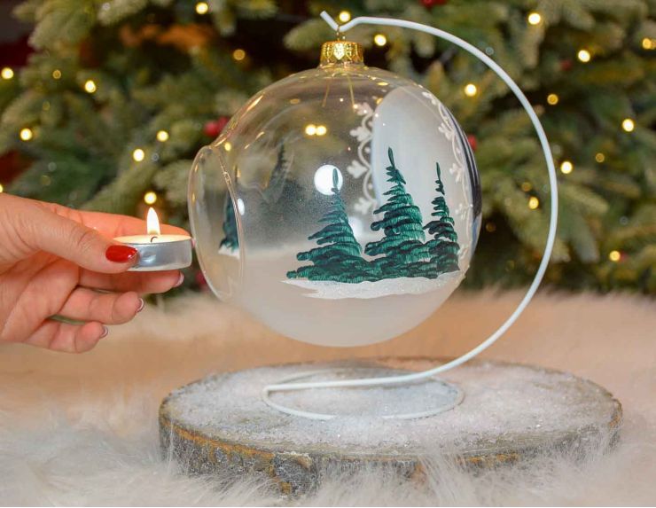 Conseil d'utilisation: Convient uniquement pour une bougie chauffe-plat ou bougie led. Allumez votre petite bougie chauffe-plat avant de la glisser dans la boule et ne déplacez pas la décoration de Noël une fois la bougie allumée. Cette boule de Noël est conçue pour y accueillir une petite bougie; l'ouverture au dessus de la boule près de l'attache permet à l'air de circuler dans la boule.