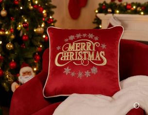 Ce coussin en velours rouge brodé "Merry Christmas" apportera une touche élégante et festive à votre décoration de Noël. Sa finition dorée et son confort en font un indispensable des fêtes.