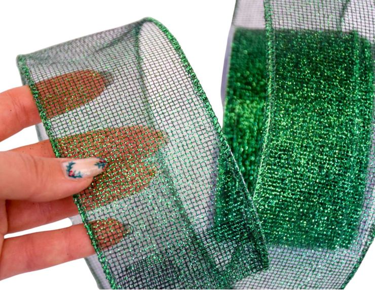 Ruban de Noël vert pailleté.