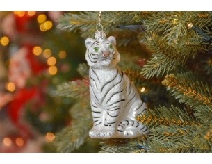 Apportez un côté safari dans votre sapin de Noël ou dans votre décoration d'intérieur avec cette boule de Noël en forme de tigre blanc réalisée à la main et en Europe.
